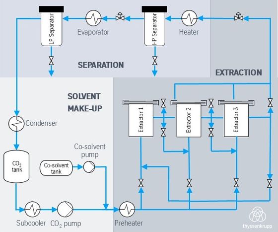 The low critical temperature of 31 °C allows gentle treatment of natural substances. In addition, CO2 is not only readily available, but is also available at relatively low prices.